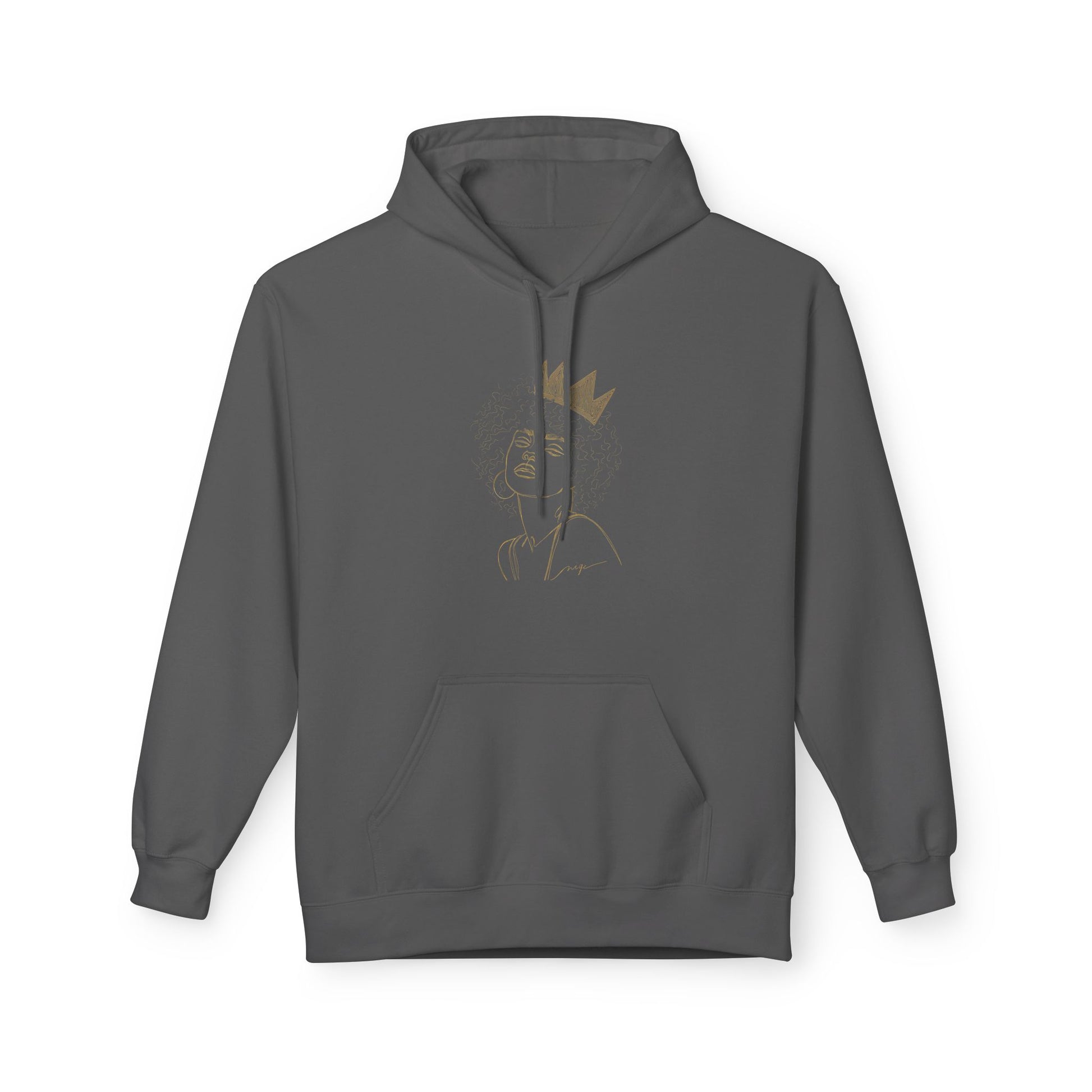 Ce hoodie noir minimaliste est sublimé par une illustration dorée élégante d’un profil afro couronné — symbole de royauté, dignité, confiance et puissance intérieure.